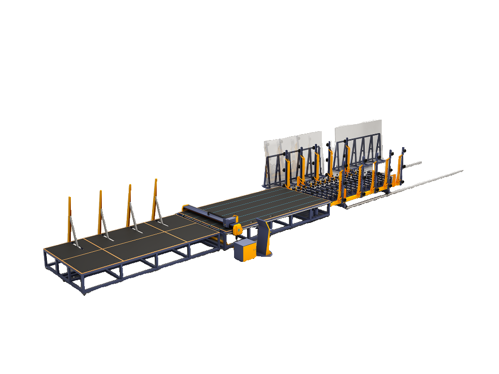 The full-automatic CNC glass cutting line is a high-precision and intelligent glass processing equipment for cutting automatically all kinds of the raw glass sheet to fit size. And it includes loading system, cutting device, break-out table, computer control system, computer optimization system and pneumatic/hydraulic control system. It’s suitable for glass processing in building, decoration, furniture, automotive glass, trains and ships glass, etc.