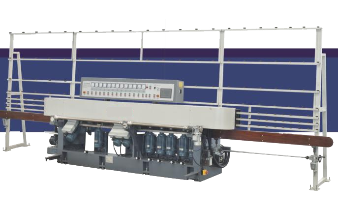 PAXB-471A (12 wheels) straight line beveling machine adopts the structure of chainless bearing, the spindles can be raised and lowered, which is a special equipment for beveled edge and bottom edge of flat glass or lens. This machine has a wide range of machining. It can grind at least 30 mm × 30 mm (1 ″× 1 ″) small glass, and the maximum processing width of beveled edge can reach 50 mm (2-3 ″ / 8). The control system is controlled by PLC and can be switched automatically and manually. The man-machine interface clearly displays various parameters such as glass thickness, bevel width and angle, remaining glass thickness and processing speed. The input and modification of parameters are intuitive, convenient and highly automatic. The transmission speed adopts frequency control, and the main drive motor adopts frequency control motor. It can grind the back plate on the machine, and is equipped with an automatic cleaning device for the back plate.